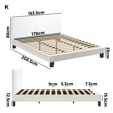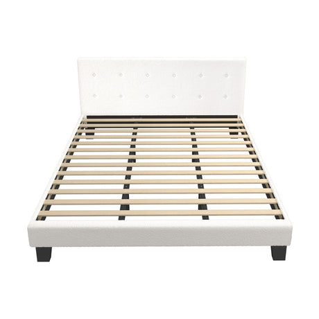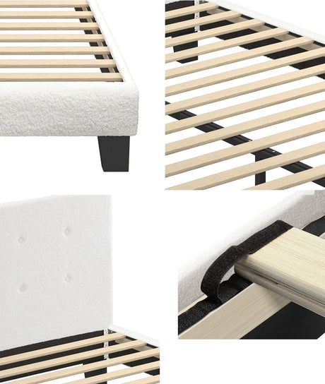 Oikiture Bed Frame King Size White Boucle
