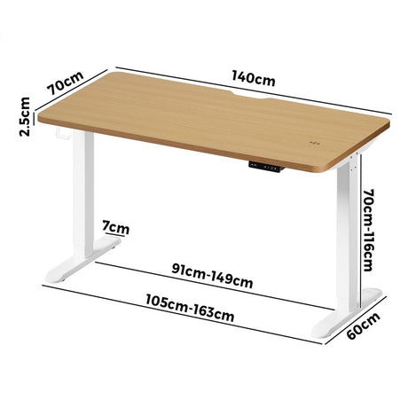 Oikiture Standing Desk Wireless Charging Single Motor 140CM White&Oak