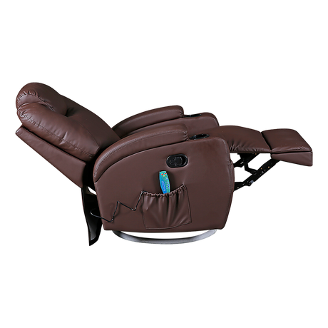Brown Massage Sofa Chair Recliner 360 Degree Swivel PU Leather Lounge 8 Point Heated
