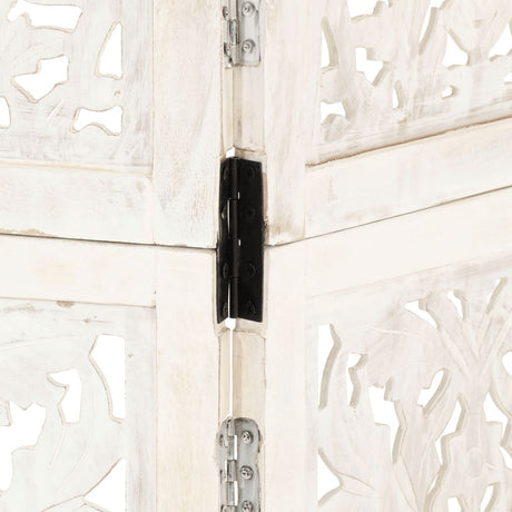 Hand Carved 3-Panel Room Divider White 120x165 cm Solid Mango Wood