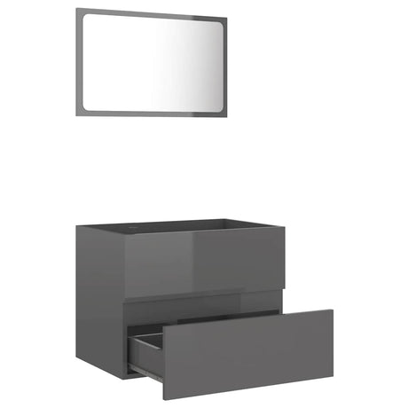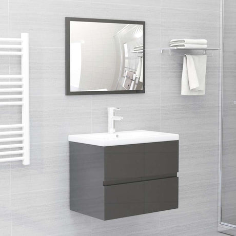 2 Piece Bathroom Furniture Set High Gloss Grey Engineered Wood