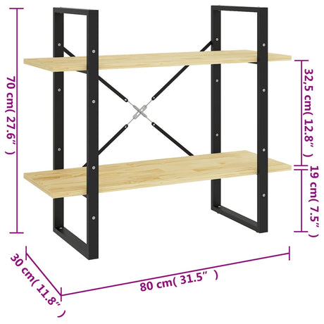 2-Tier Book Cabinet 80x30x70 cm Solid Pine Wood