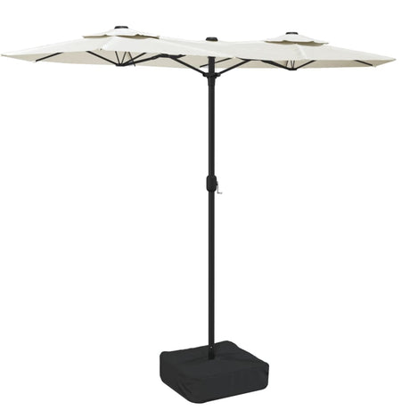 Double-Head Garden Parasol with LEDs Sand White 316x145 cm