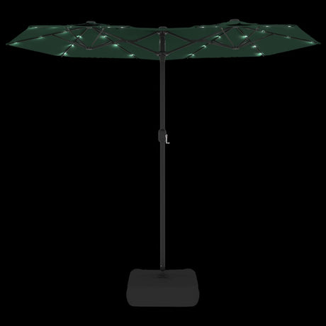 Double-Head Garden Parasol with LEDs Green 316x145 cm
