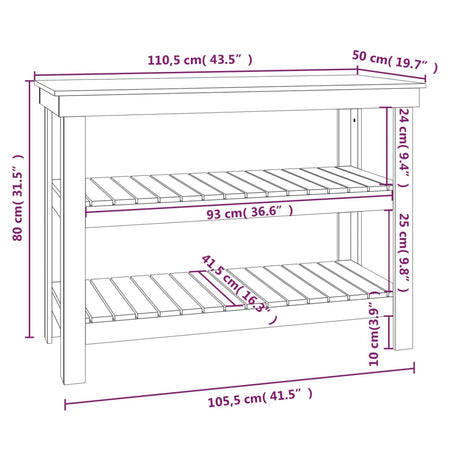 Work Bench 110.5x50x80 cm Solid Wood Pine