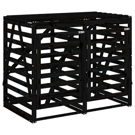 Double Wheelie Bin Storage Black Solid Wood Pine