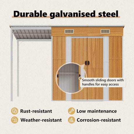 Garden Shed with Extended Roof Light Brown 277x107x181 cm Steel