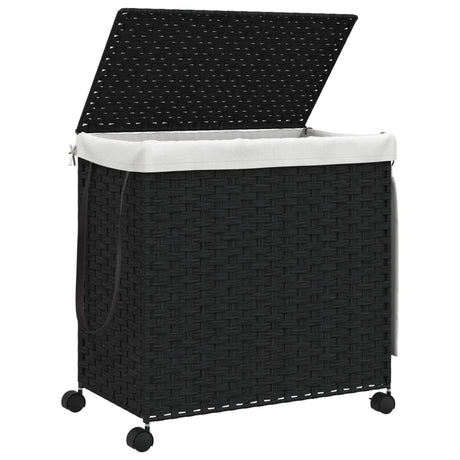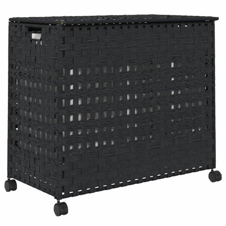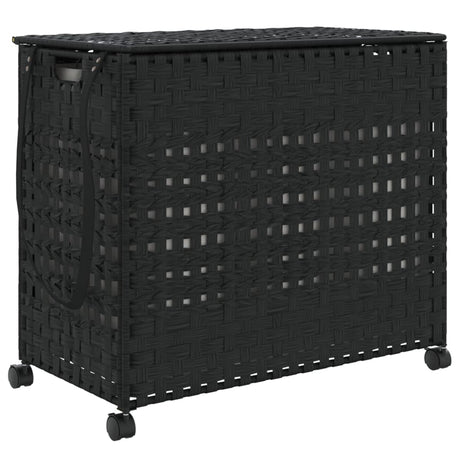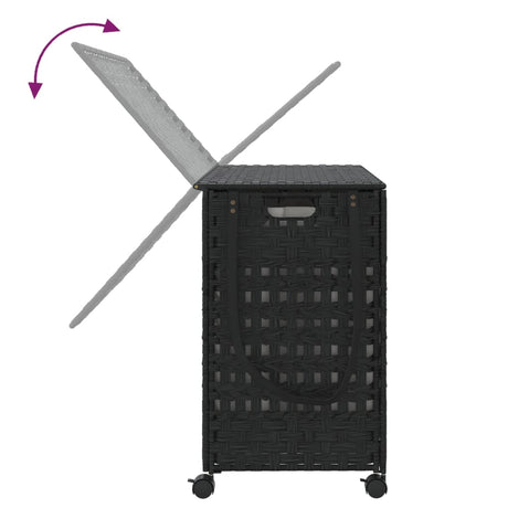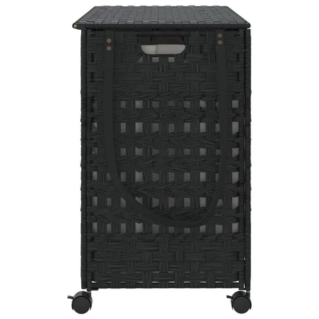 Laundry Basket with Wheels Black 66x35x60 cm Rattan