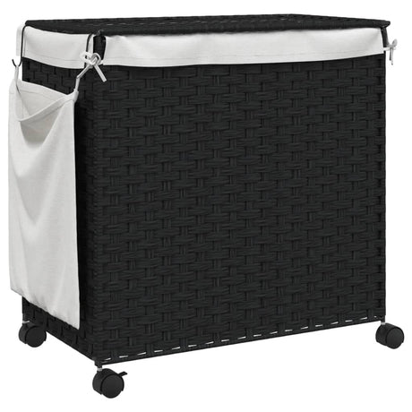 Laundry Basket with 2 Sections Black 53x35x57 cm Poly Rattan