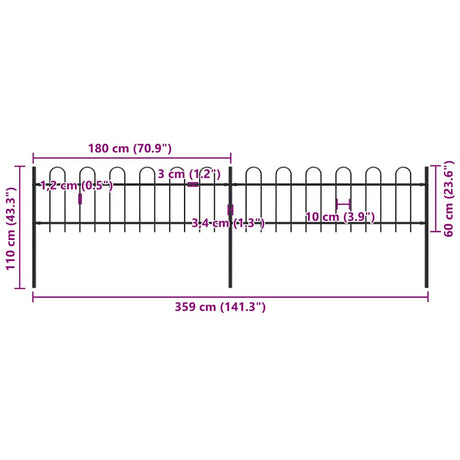 Garden Fence with Hoop Top Steel 359x60 cm Black