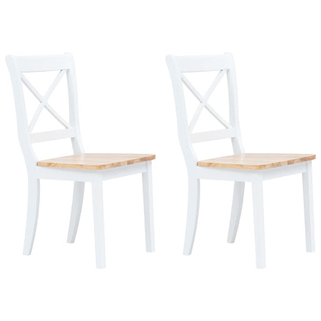 Dining Chairs 2 pcs White and Light Wood Solid Rubber Wood