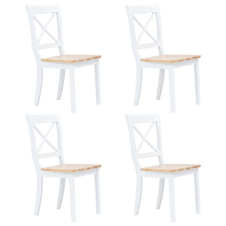 Dining Chairs 4 pcs White and Light Wood Solid Rubber Wood