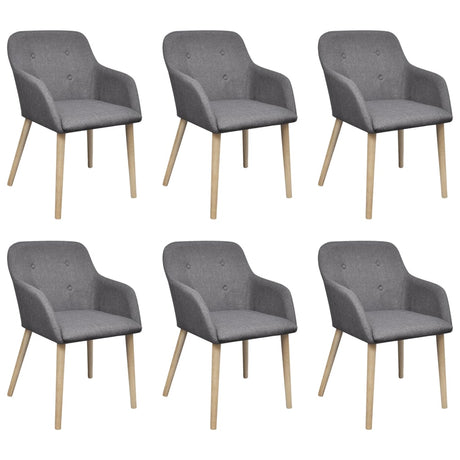 Dining Chairs 6 pcs Light Grey Fabric and Solid Oak Wood