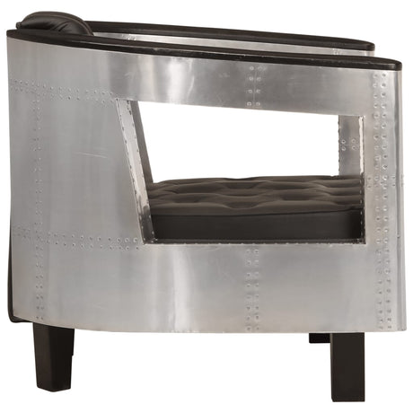 Aviator Armchair Black Real Leather