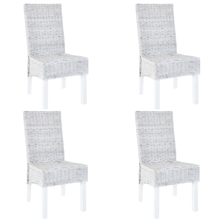 Dining Chairs 4 pcs White Kubu Rattan and Mango Wood