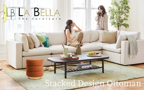 Ottoman Stool Teddy Fabric Round Stacked - ORANGE