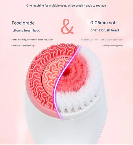 Blue 3-Head Electric Facial Cleansing Brush - Rechargeable Spin Scrubber Kit