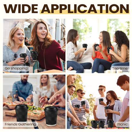 360x Triple Wall Paper Coffee Cups w/Lids (12oz) Disposable Takeaway Bulk in Black