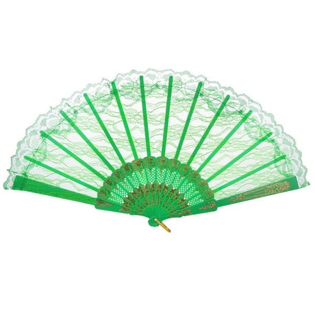 Chic Green Lace Handheld Fan for Weddings and Spanish Attire
