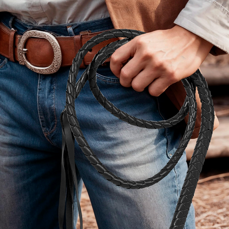 Faux Leather Cowboy Riding Whip Costume Accessory - 180cm Fancy Dress