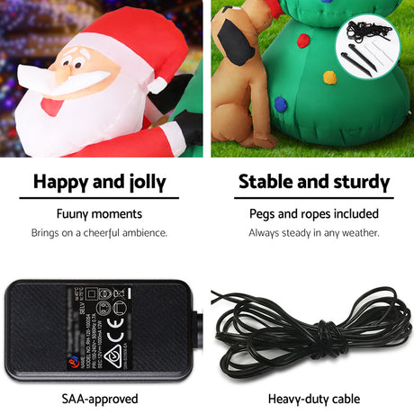Jingle Jollys Christmas Inflatable Santa Tree 1.8M Illuminated Decorations