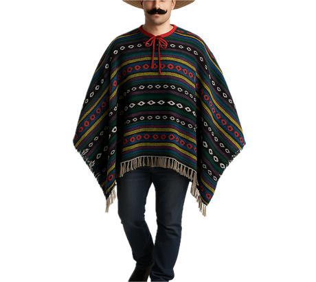 PREMIUM MEXICAN PONCHO Spanish Costume Wild West Cowboy Party Bandit 12467