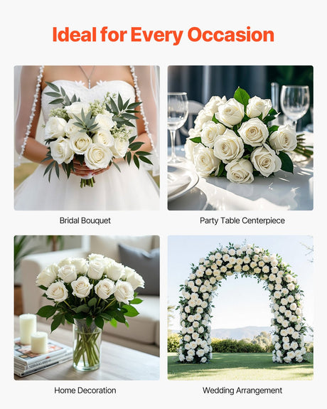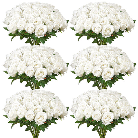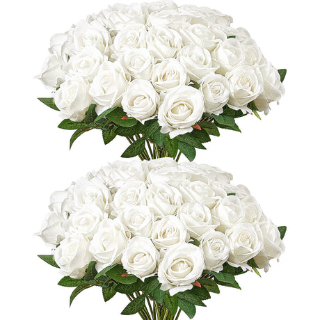VEVOR 120 Pcs White Roses Artificial Flowers Realistic Bouquet Xmas Home Decor
