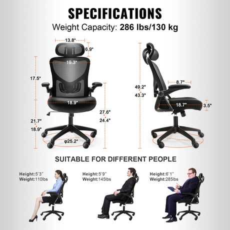 Work Office Chair - Lumber Support Flip-up Armrest Adjustable Headrest SITIO - Black