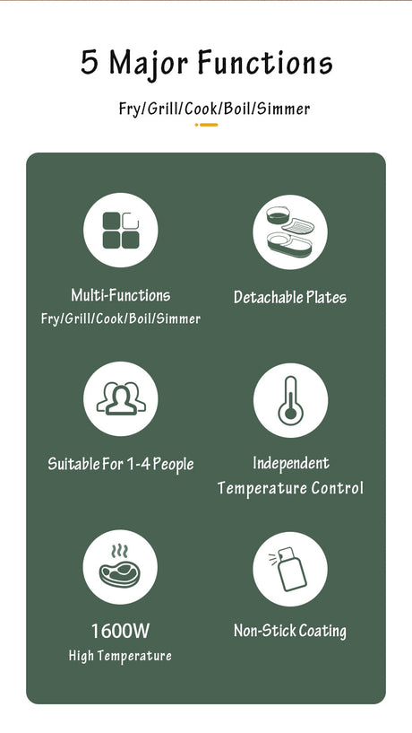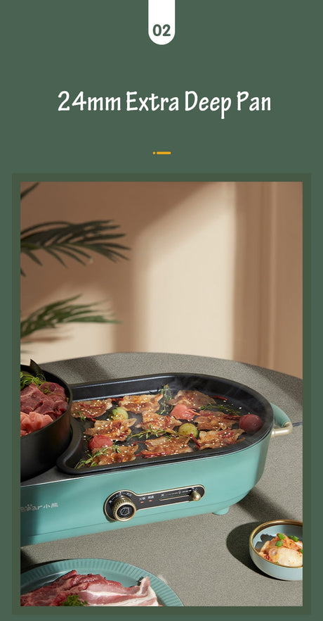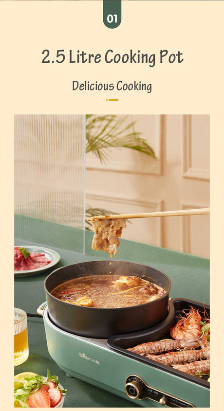 BEAR Multi-functional 2-in-1 Cooking Hot Pot And Griddle Barbecue Machine DKL-C15L1