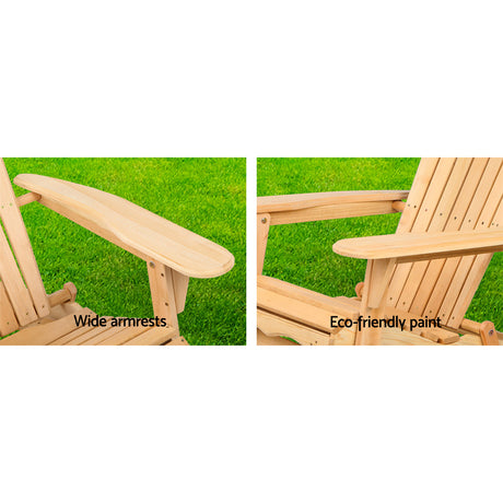Gardeon 3PC Adirondack Outdoor Table and Chairs Wooden Beach Chair Natural