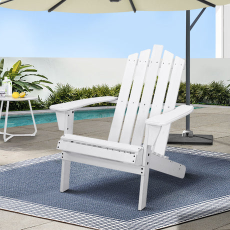 Gardeon Adirondack Outdoor Chairs Wooden Beach Chair Patio Furniture Garden White
