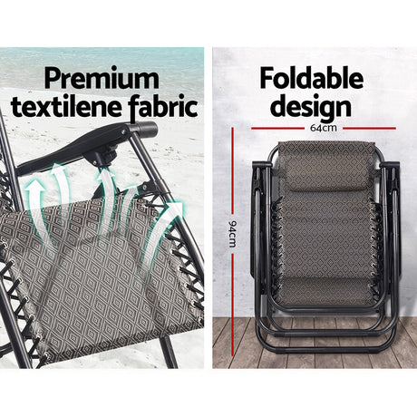 Gardeon 2PC Zero Gravity Chair Folding Outdoor Recliner Adjustable Sun Lounge Camping Grey
