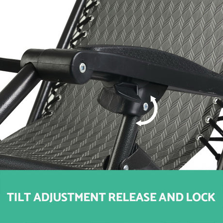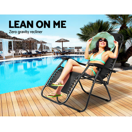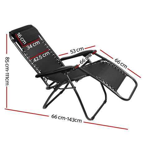 Gardeon 2PC Zero Gravity Chair Folding Outdoor Recliner Adjustable Sun Lounge Camping Black