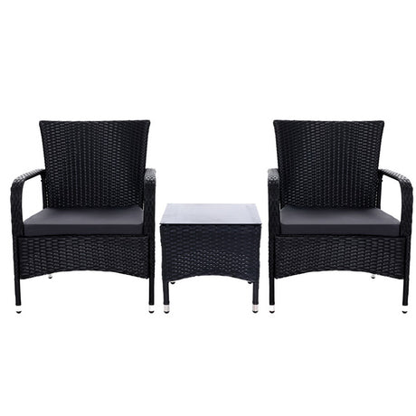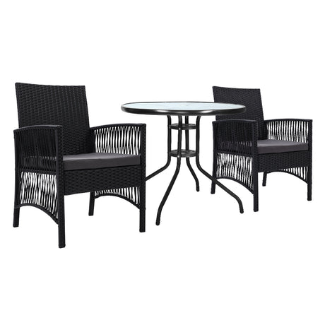 Gardeon 3PC Outdoor Bistro Set Patio Furniture Wicker Setting Chairs Table Luca
