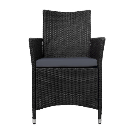 Gardeon 3PC Bistro Set Outdoor Furniture Rattan Table Chairs Cushion Patio Garden Felix