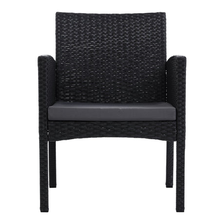 Gardeon 3PC Bistro Set Outdoor Furniture Rattan Table Chairs Cushion Patio Garden Idris