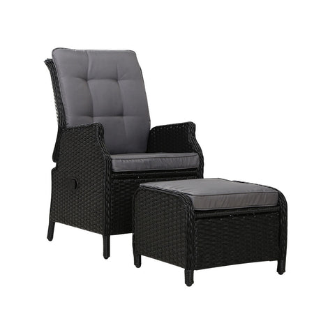 Gardeon 2PC Recliner Chair Sun lounge Wicker Lounger Outdoor Furniture Adjustable Black