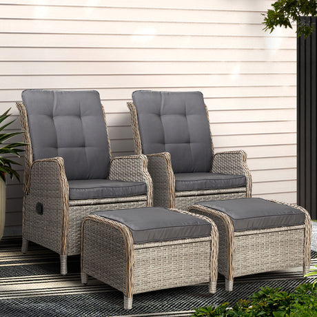 Gardeon 5PC Recliner Chairs Table Sun lounge Wicker Outdoor Furniture Adjustable Grey