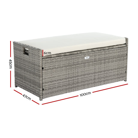 Gardeon Outdoor Storage Bench Box Wicker Garden Sheds Tools Cushion Patio Furniture Grey