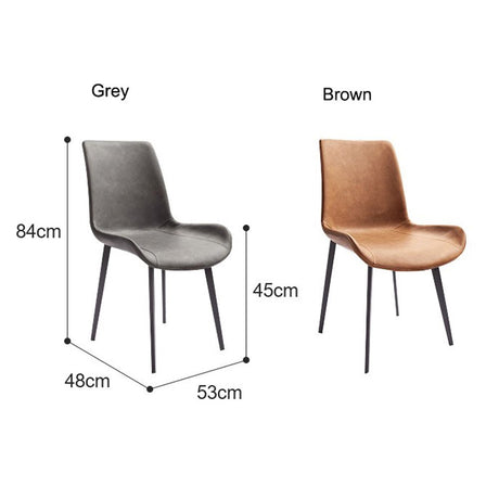 Minimal List Dining Chairs PU Retro Chair Cafe Kitchen Modern Metal Legs x 2 Grey