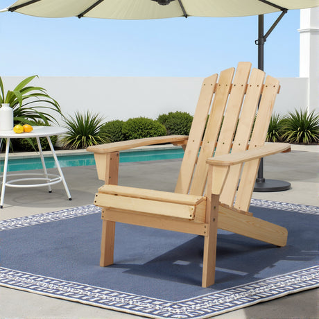 Gardeon Adirondack Outdoor Chairs Wooden Beach Chair Patio Furniture Garden Natural