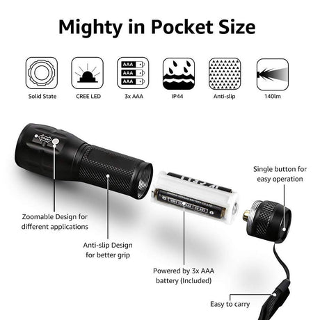 Compact Tactical LED Flashlight - Super Bright 160LM with Adjustable Zoom & Anti-Slip Grip