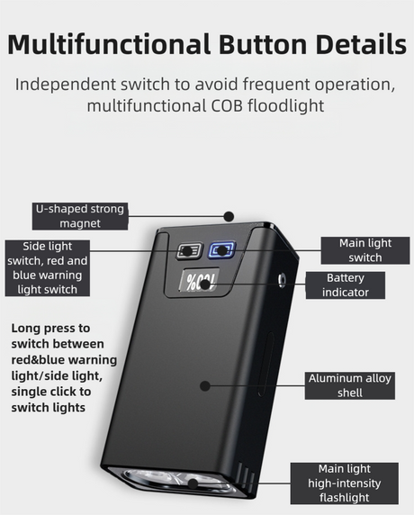 Pink-Blue Magnetic Flashlight: Spotlight, COB Flood, Red&Blue Warning