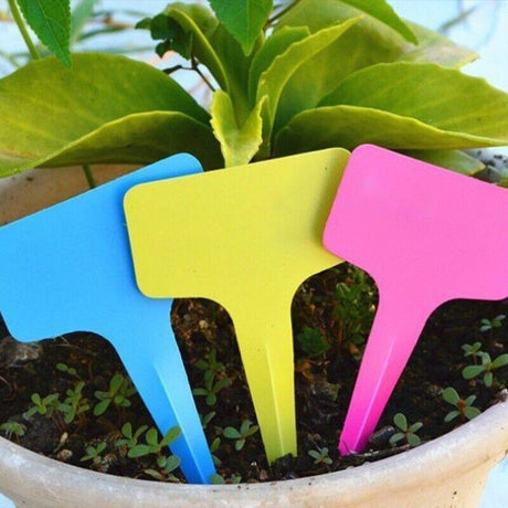 T Plant Labels 50-100Pcs 6 Colours Garden Stakes Markers Tags Nursery Seedling - Pink