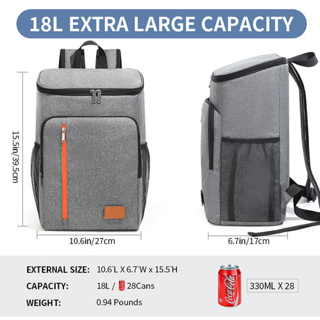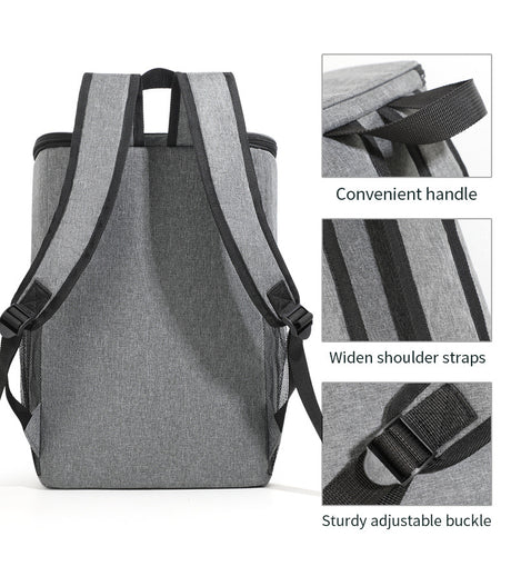 Insulated Cooler Backpack - Portable Outdoor Picnic and Beverage Bag with Bottle Opener (Gray)