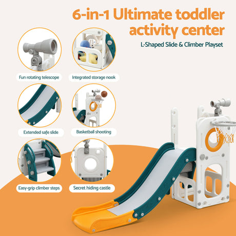 Keezi Kids Slide Set Basketball Hoop Outdoor Playground Outdoor Toys Telescope Storage