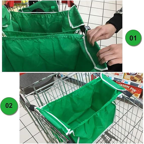 4 x Reusable Supermarket Shopping Trolley Clip-on Large Foldable Grab Handle Bag