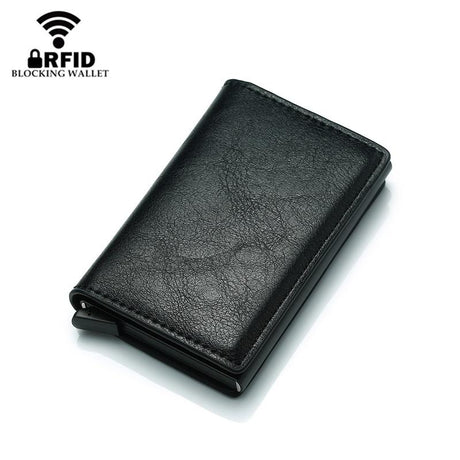 Anti Magnetic Rfid Leather Metal Wallet Universal Fit Black - Black