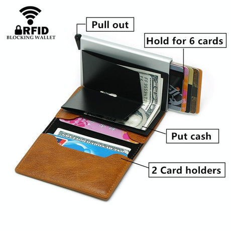 Stainless Steel Edc Wallet Coffee Leather Card Holder