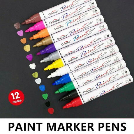 Multicolour Permanent Paint Marker Pens for Tyre Metal Glass Rubber - 12-Colour Set